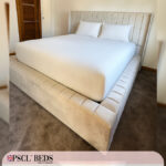 As a hallmark of luxury and comfort, the bed frame is complemented with a plush, deeply padded headboard that offers a lavish backdrop for your nightly retreat. It is the perfect spot to lean back with your favourite book or enjoy breakfast in bed on a lazy morning.