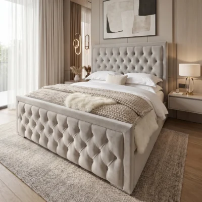 Elevate your bedroom with the sophisticated charm of the Athens Linear Designer Bed. This luxury bed frame blends modern design with timeless elegance, making it a stunning centrepiece for any contemporary or classic bedroom.