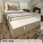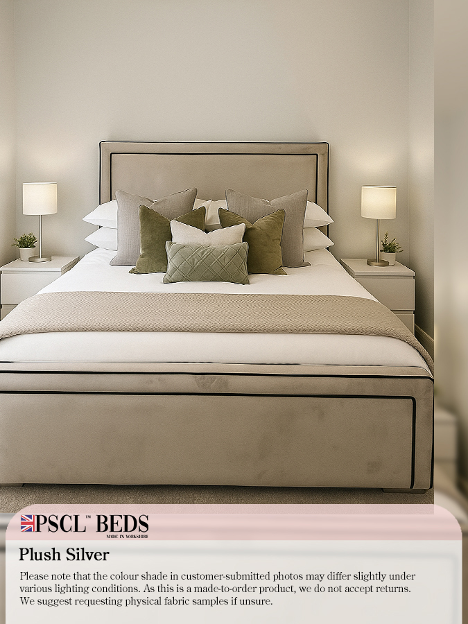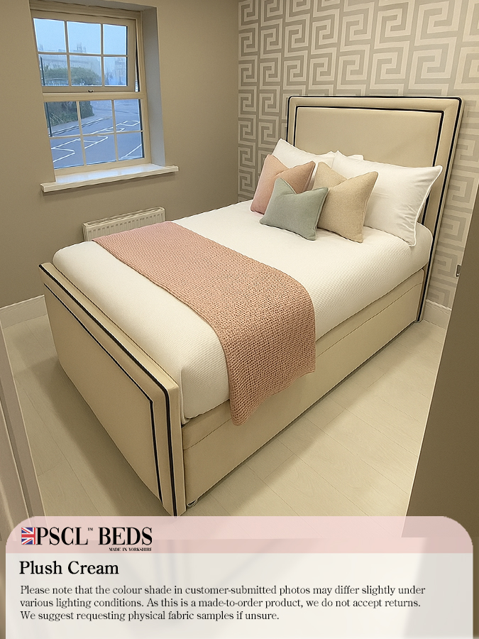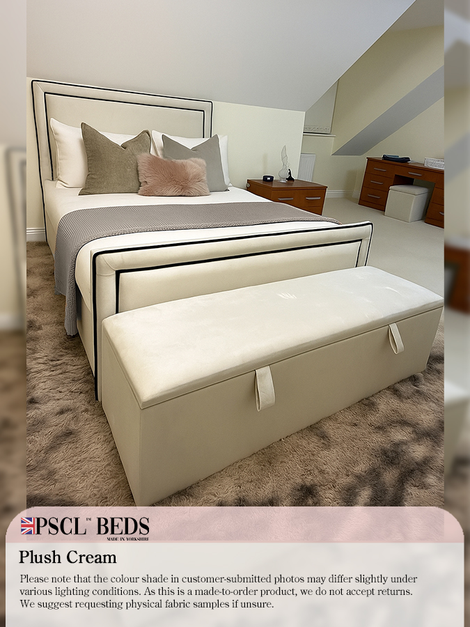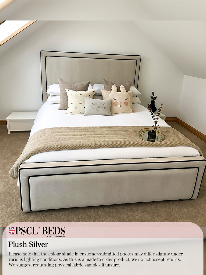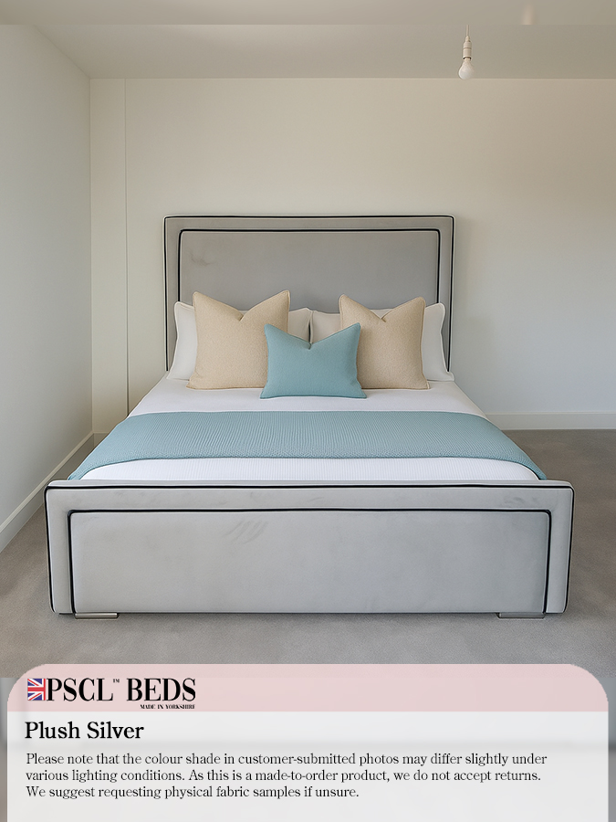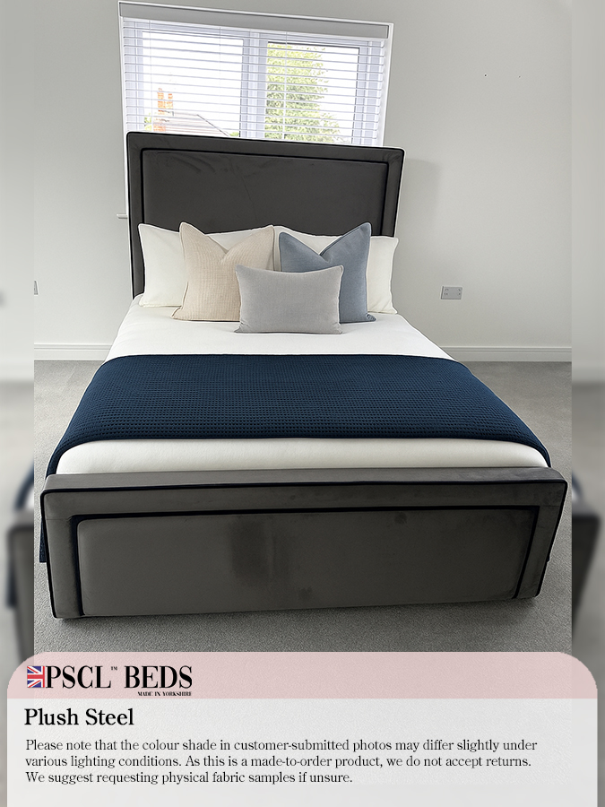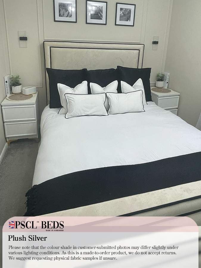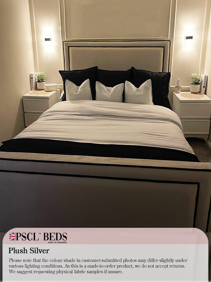 We are introducing the beautiful Ibiza Bed with Black Lining. The newest addition to the PSCL™ range. This bed has a bumper with blank lining on the headboard and footboard, along with the rectangular-shaped puffed-up centrepieces—ideal for any modern layout bedroom. Available in a range of different colours.