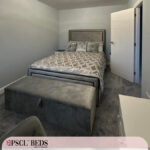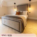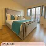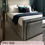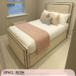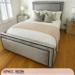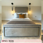 An upholstered bed frame is a type of bed frame that has been line with fabric, usually padded for extra comfort. These types of bed frames are often seen in more stylish designs and can come in a variety of colours and patterns. Upholstered bed frames typically add a touch of luxury to any bedroom and can really help to make it feel like a cozy and inviting space. If you’re looking for an upgrade from your usual boring bed frame, an upholstered one would be a great option!