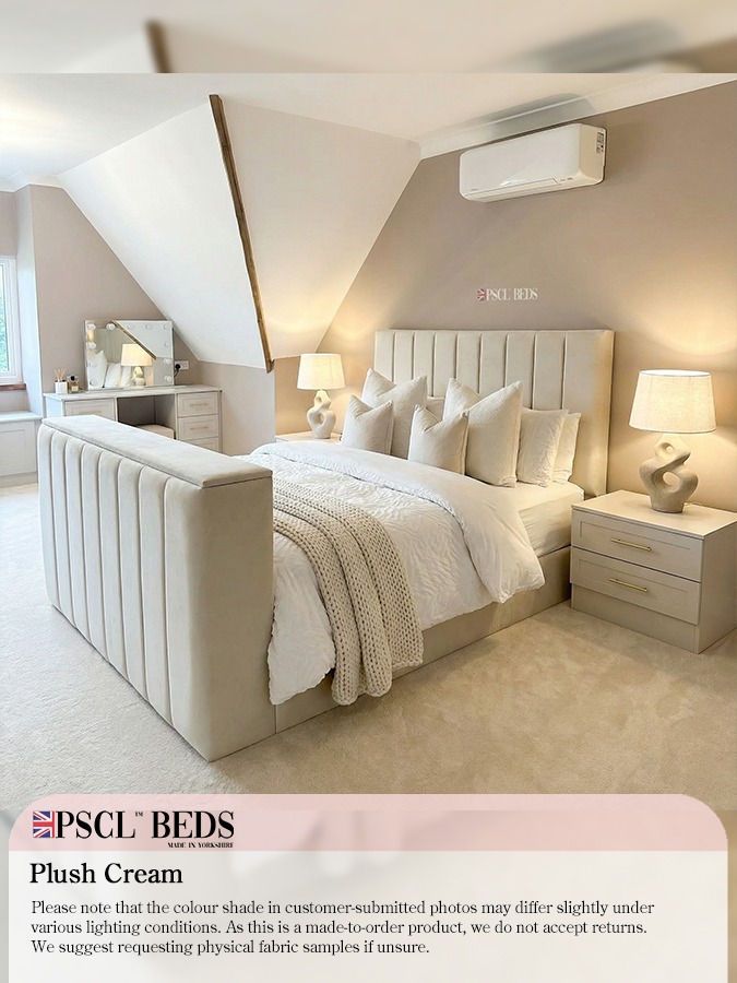 Bring luxury, comfort, and entertainment together with the Bedflix TV Bed Frame. Beautifully crafted in the UK, this premium TV bed frame is designed for modern bedrooms where style matters just as much as practicality. It features a tall, elegant 137 cm headboard that creates a striking focal point, while the integrated TV lift concept lets you enjoy your favourite shows from the comfort of your bed.